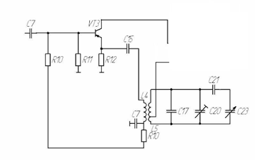 В данном приёмнике используются два каскада УПЧ. Рисунок 7 Первый каскад УПЧ выполнен по апериодической схеме на транзисторе КТ357А, работающий как простой усилительный каскад не имеющий частотной избирательности.