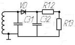 Диодный детектор на точечном диоде VD1 типа Д9Б выполнен по последовательной схеме. Связь детектора с УПЧ индуктивная. Так как в приёмнике АМ для простоты схемы выбираем диодный детектор.