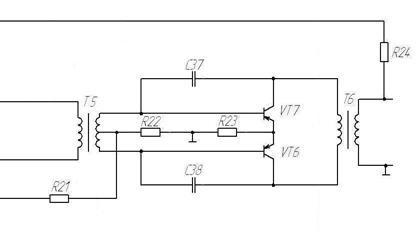 Каскад УНЧ выполнен по схеме с трансформаторным выходом. УНЧ представляет собой предоконечный каскад на VT4 (работает в режиме класса В) и оконечный однотактный – на VT5 (работает в режиме класса АВ).