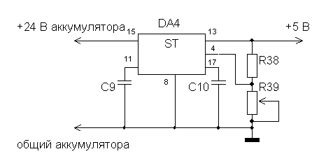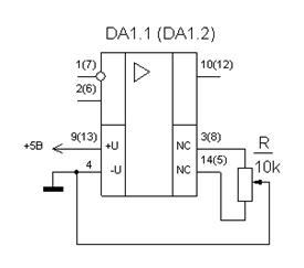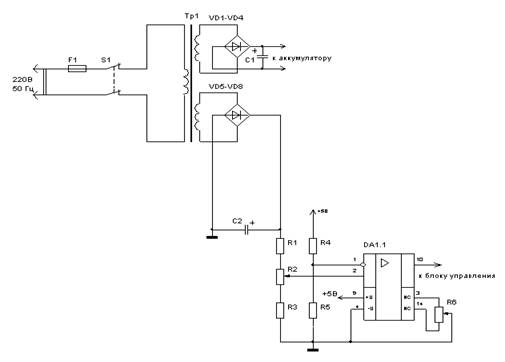 - стабилизатор - обеспечивает постоянное напряжение питания +5В для микросхем устройства, также является источником опорных напряжений для схем компараторов;