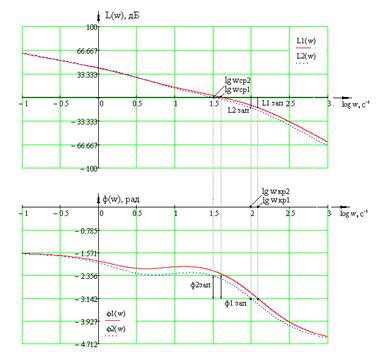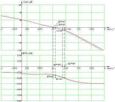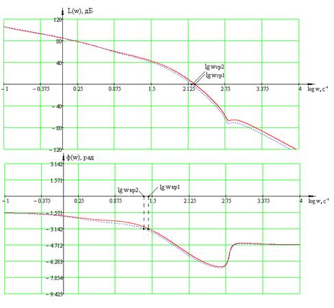 log wср =1.6, wcp =40 рад/с . Она близка к требуемому значению.