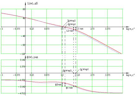 Типовая «симметричная» ЛАХ на среднечастотном участке имеет наклоны (-40 дБ/дек; -20 дБ/дек; -40 дБ/дек). Сравнивая с заданной передаточной функцией первого сепаратного канала, определим, что желаемая передаточная функция будет иметь вид: