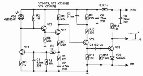 Рис.2 Принципиальная схема приемника ИК-импульсов.