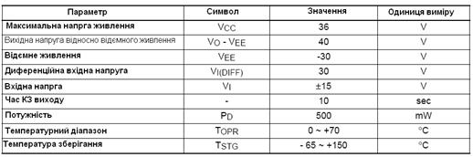 Будемо використовувати одно полярне живлення +5В. Далі приведу максимальні значення вхідних та вихідних сигналів:
