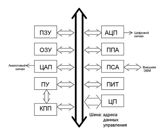 Блок 2: инициализация системы – обеспечивает начальную установку системы: настройку программных БИС (параллельных и последовательных периферийных адаптеров, контроллера прерываний, таймера), засылку в выходные каналы управляющих воздействий и т.д.