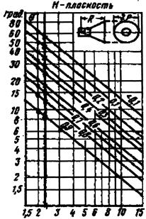 . Рисунок 2.6 содержит данные для определения главного лепестка. На нем указаны углы θ с осью рупора