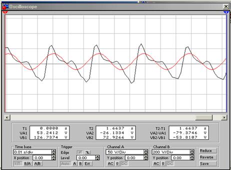 Рисунок 3 – Осциллограммы выходного и входного сигнала(красным – входной сигнал, черным – выходной сигнал).