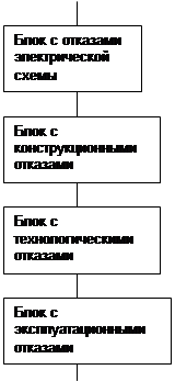 отказы электрической схемы (отказы элементов электрической схемы), конструкционные отказы (недостаточное обеспечение объекта по следующим показателям: механическая прочность, условия теплообмена, электромагнитная совместимость), технологические отказы (погрешности предварительного производства, плохая сборка, ошибки в электрическом монтаже, плохая настройка).
