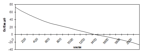 Определим соотношения суша – море – суша 2:4:2 для максимальной дальности Dmax = 935 миль (в километрах – 1544.62 км) и дополнительную фазу для каждой дистанции по рисунку 1.13 учебника [1]: