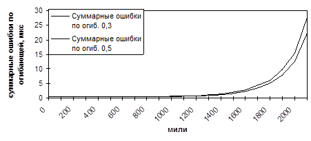 Рис. 8. График суммарных ошибок отсчетов по огибающей sto S для двух уровней слежения