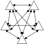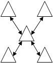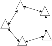 При полносвязном способе построения (рис 1, а) между всеми узлами существует непосредственная связь. В этом случае при повреждениях или перегрузках на отдельных участках возможна организация обходной связи через транзитное соединение, однако такой способ построения сети является наиболее дорогостоящим. При радиальном способе построения сети (рис 1, б) связь между узлами осуществляется через один центральный узел. Это резко сокращает общее число пучков соединительных линий (СЛ), но при этом отсутствует возможность создания обходных путей. Такой способ может быть использован при построении сети на сравнительно небольшой территории. На большой территории сеть чаще всего строится по радиально-узловому способу (рис 1, в). В этом случае связь организуется через узлы связи двух и более классов. При комбинированном способе построения сети (рис 1, г) узлы I класса соединяются между собой по полносвязной схеме или по кольцевому принципу. В этом случае выход из строя одной узловой станции не нарушает работу всей сети. Кольцевой способ построения сети (рис 1, д) предусматривает возможность осуществления связи между узлами как по часовой, так и против часовой стрелки. В этом случае при повреждении на определенном участке сеть полностью сохраняет свою работоспособность. Кроме того, используется сравнительно небольшая общая протяженность линия связи.