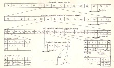 Рис 5. Структура цифрового линейного сигнала ИКМ-30 (первичный цифровой поток)