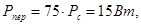 - Мощность излучаемого сигнала - Рпер =15Вт