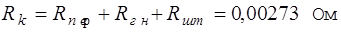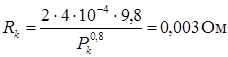 — сопротивление рабочей части гнезда и штыря, Ом.