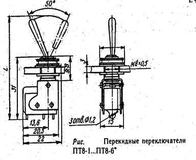 Ручки переключателей в большинстве случаев цилиндрические и конусообразные, угол между их положениями — 35°...50°.