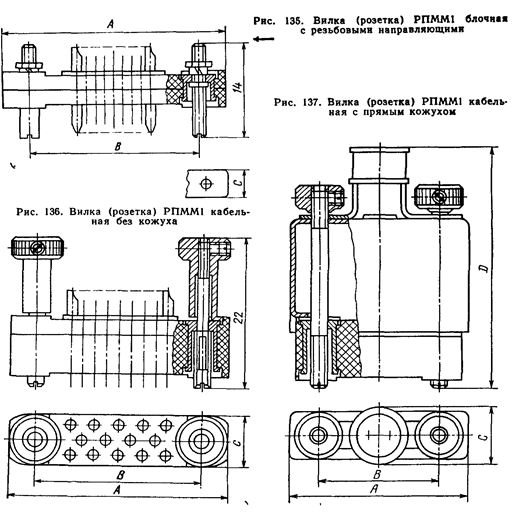 Габаритные размеры соединителей и их обозначения: Н—нормальных габаритов, Г — малогабаритные, С — субминиатюрные, М — микроминиатюрные, К — супермикроминиатюрные.