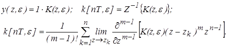 Подставим x(z) и K (z, e ) в выражение для выходного дискретного сигнала
