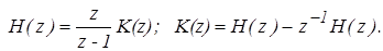 Определим связь между переходной функцией и функцией веса дискретной системы. Для области z можно записать следующие соотношения