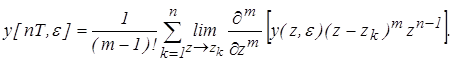 Определим значения полюсов – zk их число – n и кратность – m: z1 = 1; n = 1; m = 2.