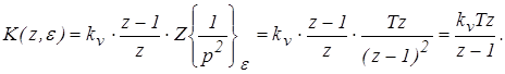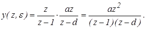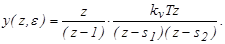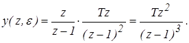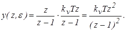 Определим переходную функцию дискретной системы. Дискретное преобразование единичного воздействия x(t) = 1 (t) равно x(z) = z/(z-1).