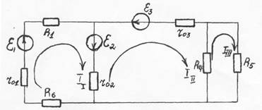 1. В предложенной электрической схеме выделил независимые контуры. В контурах произвольно (по часовой стрелке) указал направления контурных токов: II , III , IIII .