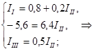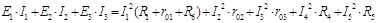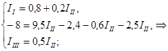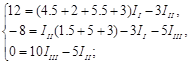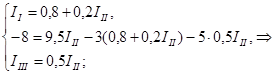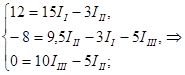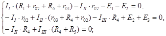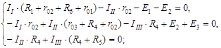 3. Решил систему из трех уравнений, подставив известные по условию задачи значения ЭДС и сопротивлений, и нашел значения контурных токов II , III , IIII .