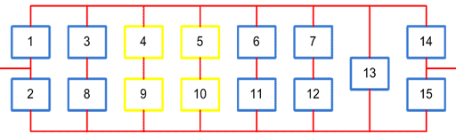 4. Элементы 1,2, 6,14,15 образуют мостик. Заменяем их элементом K