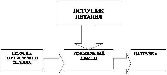 Усилитель (рис. 1) - это электронное устройство, управляющее энергией, поступающей от источника питания к нагрузке. Причем мощность, требующаяся для управления, как правило, намного меньше мощности, отдаваемой в нагрузку, а формы входного (усиливаемого) и выходного (на нагрузке) сигналов совпадают.