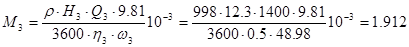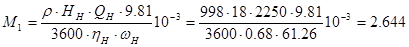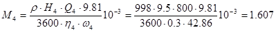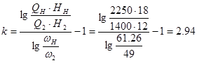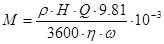 где НН [м], QH [м3 /ч] и ηН - значения напора, производительности и КПД, соответствующие точке пересечения характеристики насоса и магистрали;