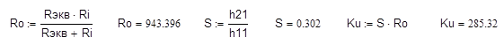 Зададимся величиной сопротивления в цепи коллектора Ом. Эквивалентное выходное сопротивление Rэкв, как параллельное соединение Rк и Rн, из-за большой величины Rн, равно 1000 Ом.