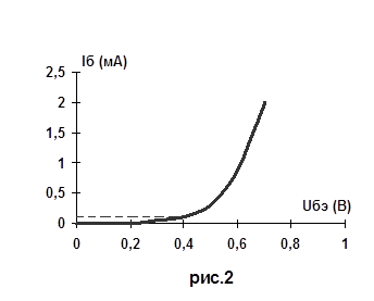 Для нахождения напряжения база-эмиттер UБЭпост на графике входных характеристик было отложено значение IБпост (см. рис 2).