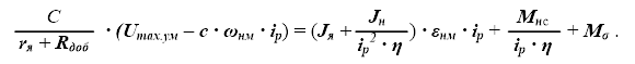 Umax .ум = =I ня ×R доб + U ня . – (уравнение якорной цепи для номинального режима).