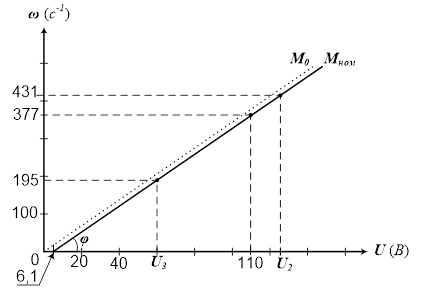 2 точка – трогание двигателя, при U = U Тр , и ω = 0;