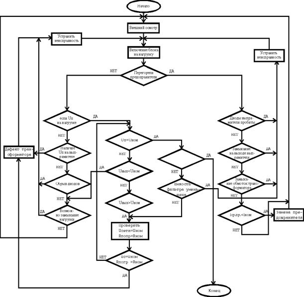 Обобщенный алгоритм диагностики блока питания телевизора. В противном случае возможно повреждение элементов при переходных процессах вследствие больших выбросов напряжений.
