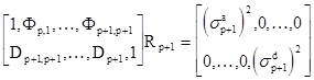 От матричного уравнения (5) можно перейти к матричному уравнению (6) лишь в том случае, если коэффициенты фильтров прямого и обратного предсказания p-го порядка связаны с коэффициентами фильтра (p+1) – го порядка следующим образом