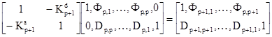 – дисперсия ошибки обратного предсказания на выходе p-го звена фильтра обратного предсказания. Объединив матричные уравнения (2) и (4) можно записать общее уравнение