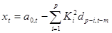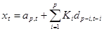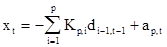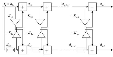 – ошибка обратного предсказания на выходе р-го звена фильтра. Уравнение описывает регрессию значения случайного процесса