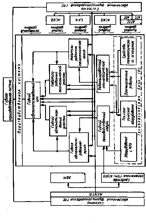 Система управления охватывает все уровни иерархии ГПС; нижний уровень управления - ГПМ и обслуживающие их АСС, АТС и САК; средний уровень управления - ГАЛ и ГАУ и обслуживающие их АСС, АТС и САК; высший уровень управления - ГАЦ, т.е. управление производственными единицами (линиями и участками) в соответствии с заданным планом производства изделий.