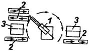 При этом с помощью ПР решаются также задачи диспетчирования работы оборудования, входящего в состав РТК, элементов транспортных систем и дополнительных механизмов. Разновидностью указанной схемы является обслуживание несколькими ПР группы станков, число которых превышает число роботов.