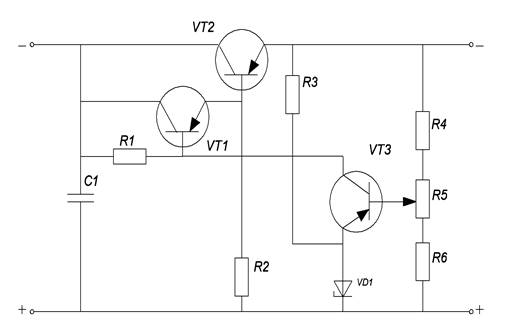 Рисунок 3.1 - Схема електрична принципова стабілізатора на трьох транзисторах