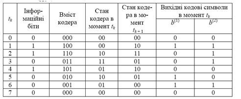 Таблиця 1 - Процес кодування послідовності інформаційних бітів 01101000