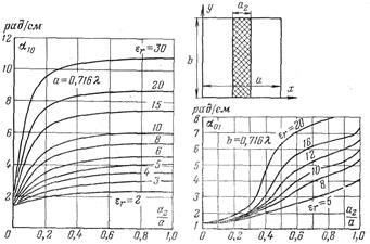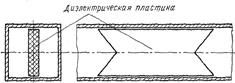 ) с диэлектрической продольной вставкой. Последние являются довольно компактными по сравнению с первыми, к тому же они просты в настройке, но величина пропускаемой мощности в них ограничивается свойствами диэлектрика. Остановимся на этом варианте. Поскольку фазирующая секция должна вставляться в каждый рупор решетки, то величина пропускаемой мощности каждой секцией будет меньше всей передаваемой мощности во столько раз, сколько всего излучателей. И необходимо учитывать, что она не должна превышать предельную мощность выбираемого диэлектрика.