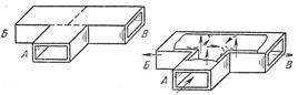 Для соединения тройников между собой, используем уголковые соединения или изгибы в поскостях Е или Н (рис. 20).