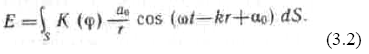 Результирующее колебание в точке Р представляет собой суперпозицию колебаний (3.1), взятых для всей волновой поверхности S:
