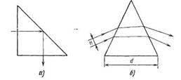 Рис. 1.16. Ход лучей в отражающей (а) и преломляющей (б) призмах