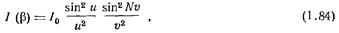 ). В (1–84) второй сомножитель характеризует интерференцию крайних лучей внутри одной щели (условие максимума