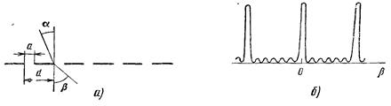 Рис. 1.18. Дифракционная решетка (а) и вид ее аппаратной функции (б)