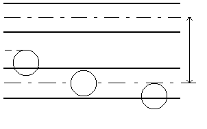 – расстояние между дорожками предполагается, что центр пятна совмещен с центральной линией дорожки.