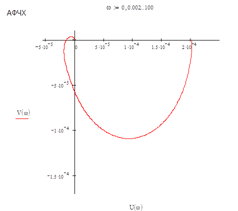Анализируя АФЧХ, приходим к выводу, что по критерию устойчивости Найквиста первый контур данной САУ устойчив, т. к. годограф не пересекает отрезок вещественной оси (- ∞; -1).