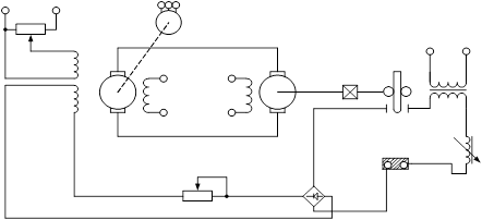 Диодный мост, на вход которого подается напряжение сварочной дуги Uд, является выпрямительным устройством. С его выхода подается напряжение на потенциометр который является корректирующим устройством. С его выхода питается индуктивная обмотка возбуждения генератора служащая для создания сигнала рассогласования. Эта катушка создает магнитный поток Ф2.
